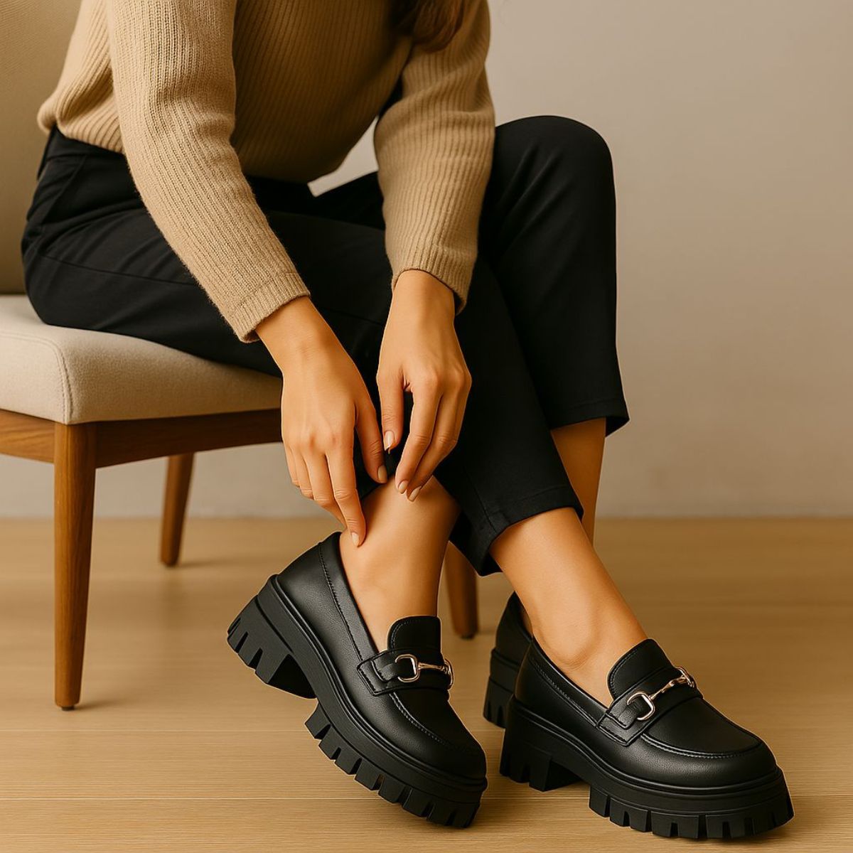 Conheça o Mocassim Feminino Tratorado Preto da marca Vitazzy, ideal para quem busca conforto e estilo no dia a dia. Este calçado traz uma sola tratorada robusta que garante excelente aderência e durabilidade, perfeita para o uso urbano. Confeccionado em material sintético de alta qualidade, o mocassim proporciona resistência e fácil manutenção. Seu design preto clássico com detalhe em fivela metálica valoriza qualquer look, do casual ao social.